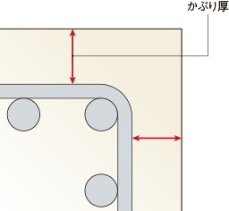 鉄筋が大気に触れて腐食することを防ぐコンクリートかぶり厚は厚いほど耐久性は高まります。